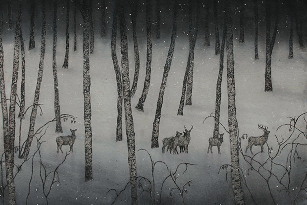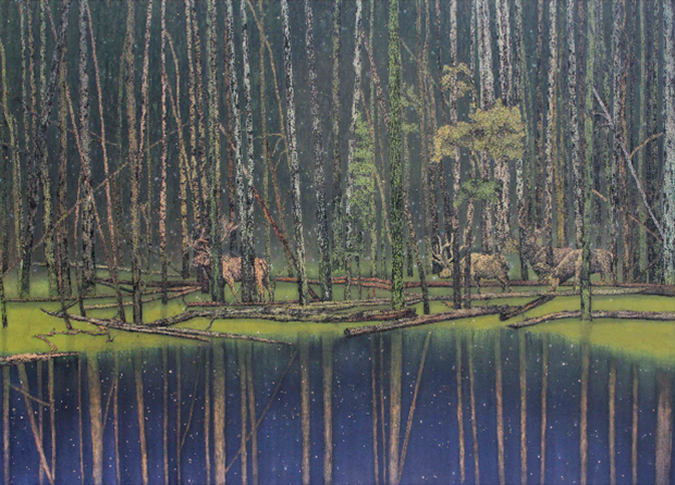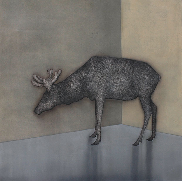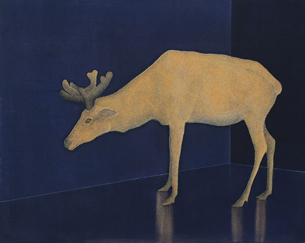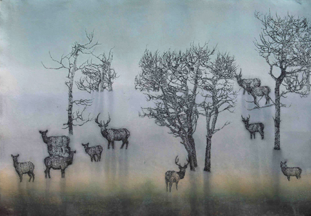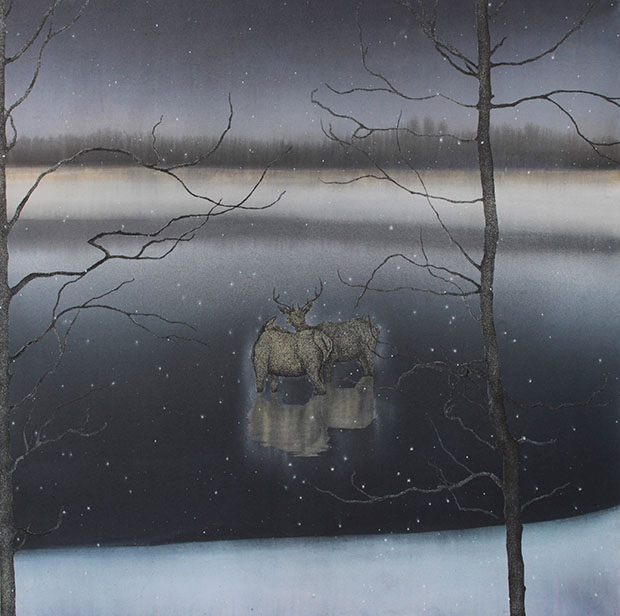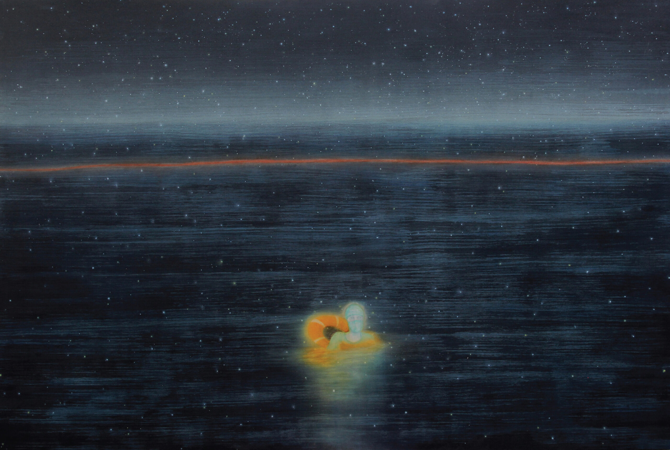 '“a placid dream” acrylic, ink and silicon carbide on handmade cotton rag paper'