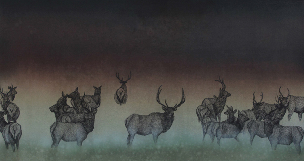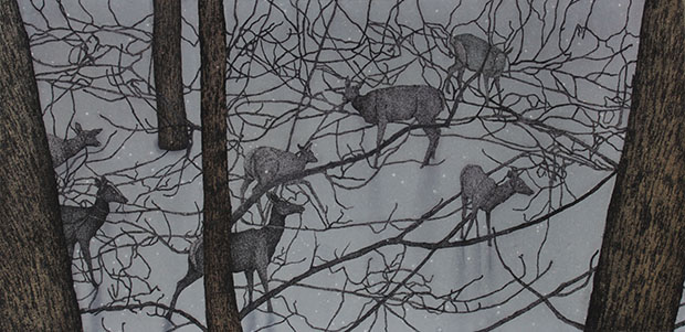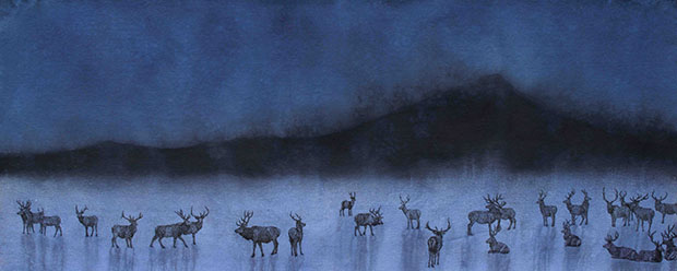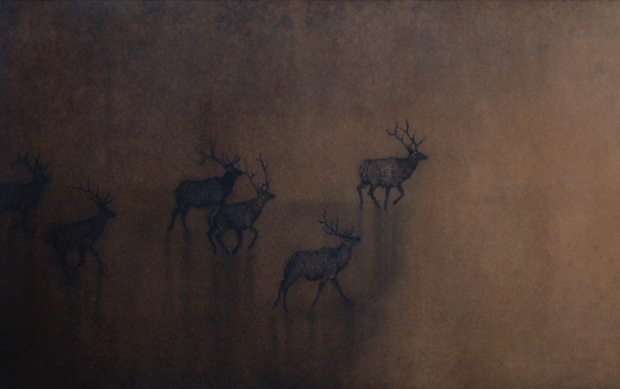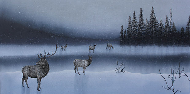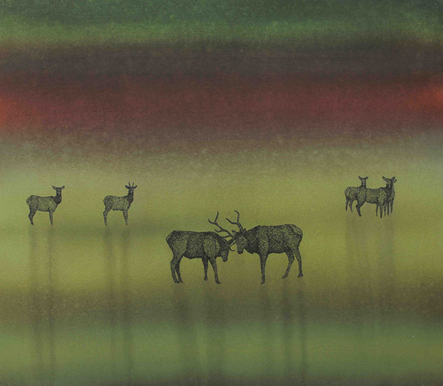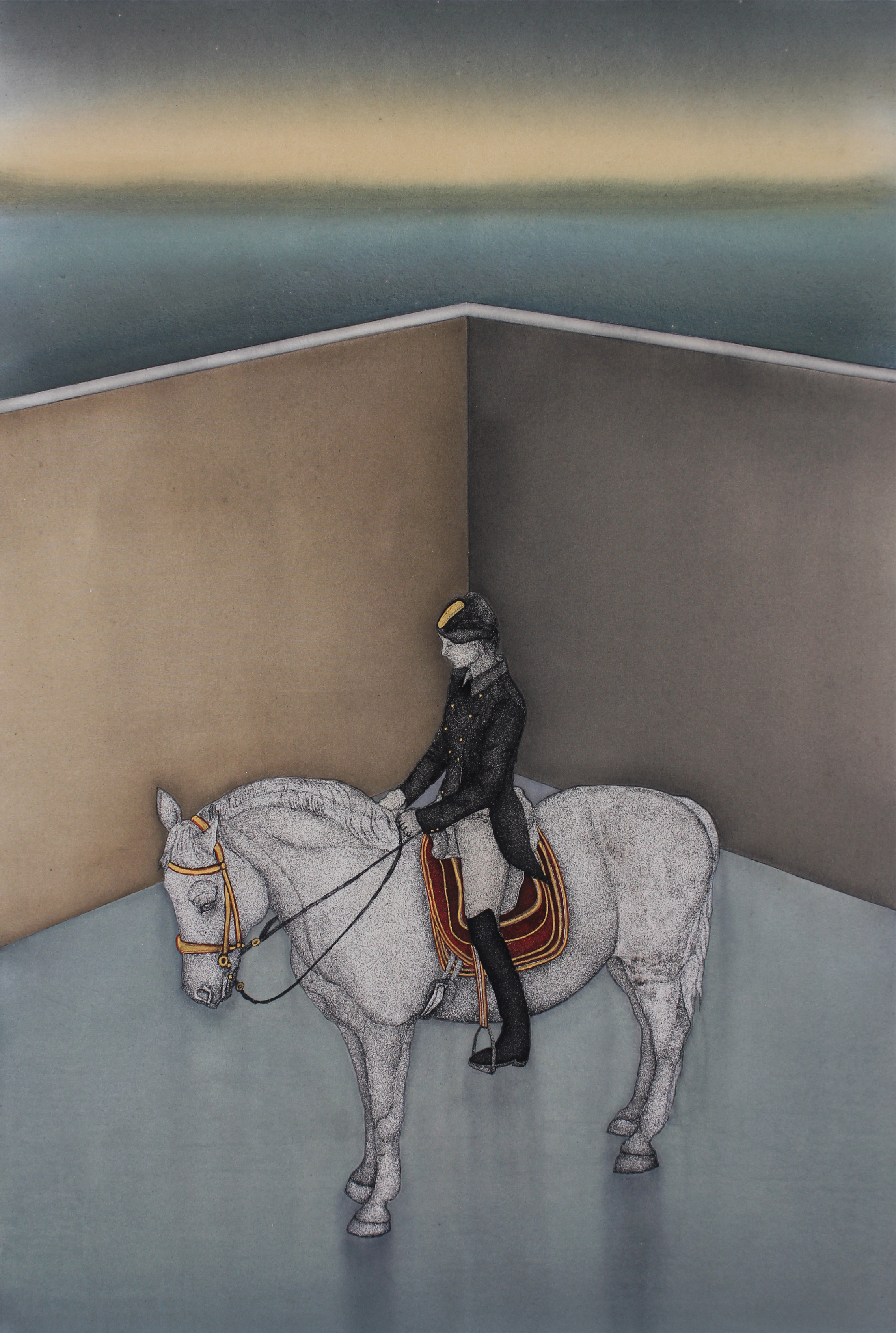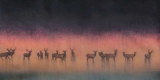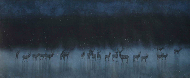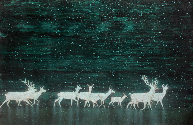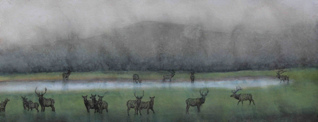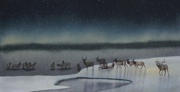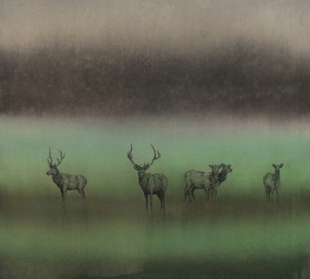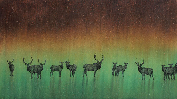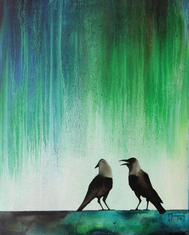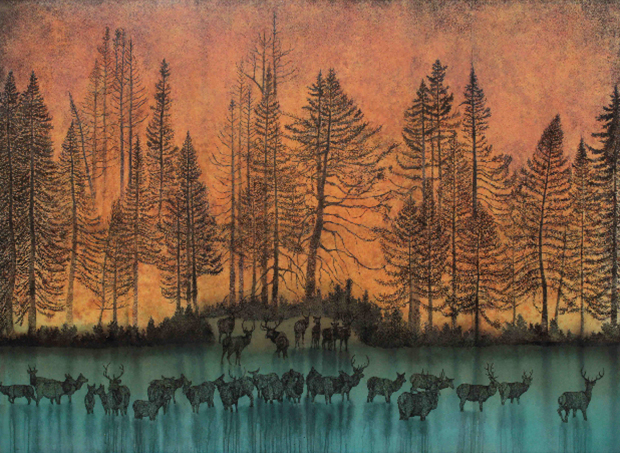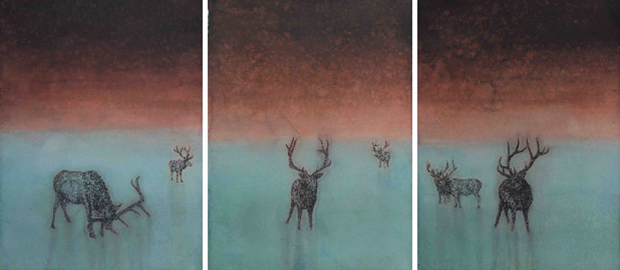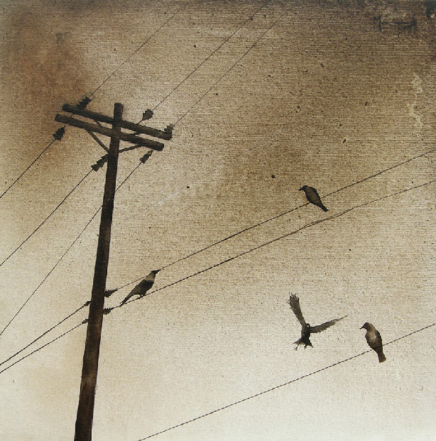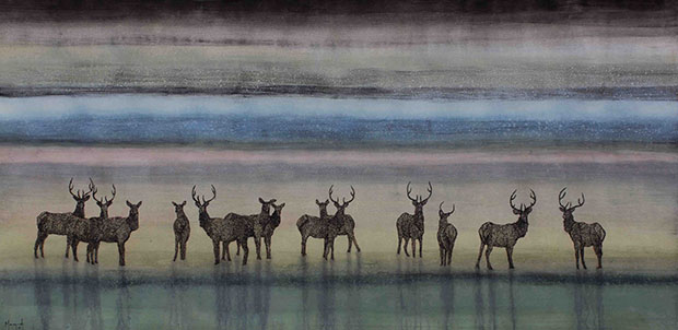 '“mirage” ink, acrylic and watercolour pencil on rice paper mounted on canvas 10” x 12”'