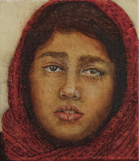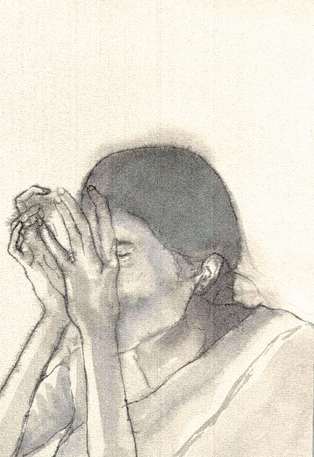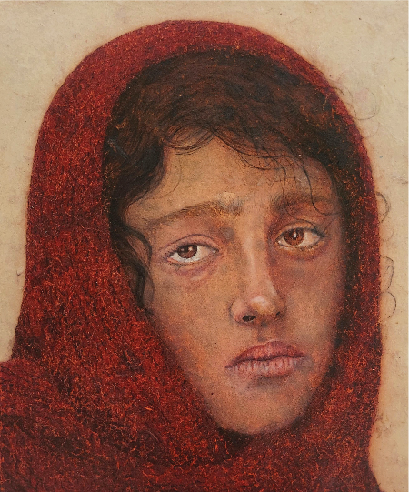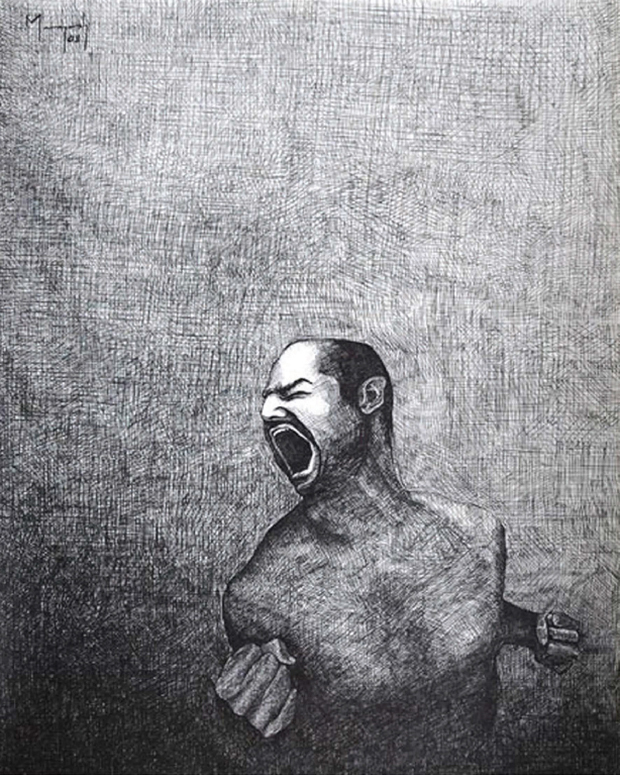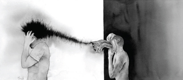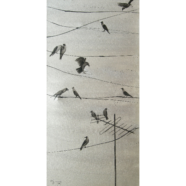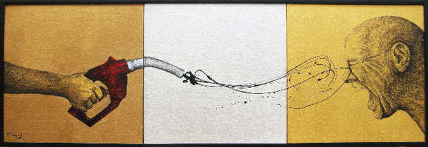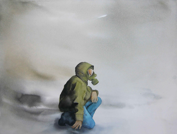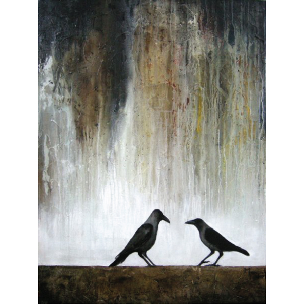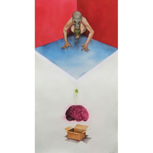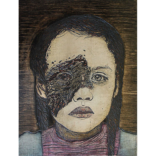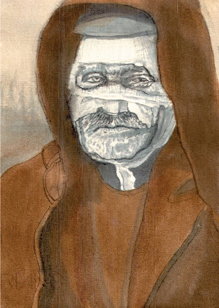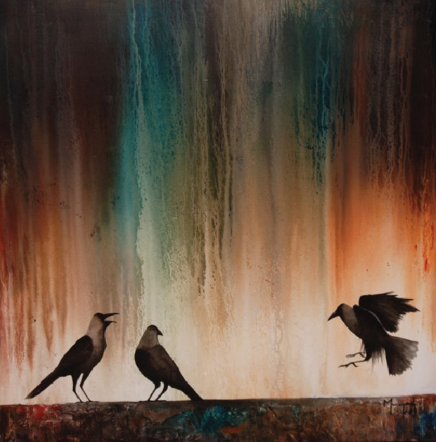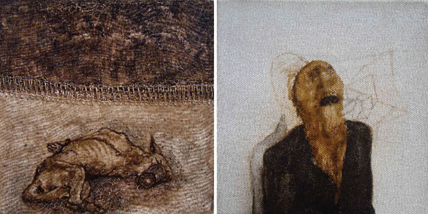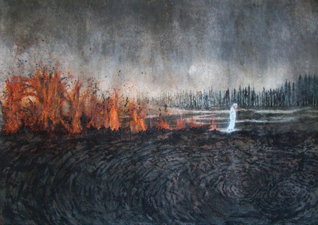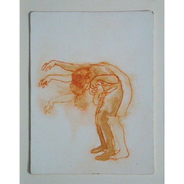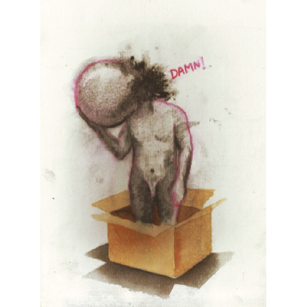 '“despair” ink, acrylic and watercolour pencil on rice paper mounted on canvas 6” x 7”'
