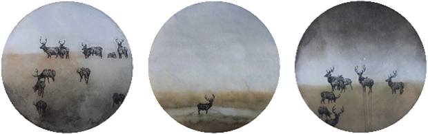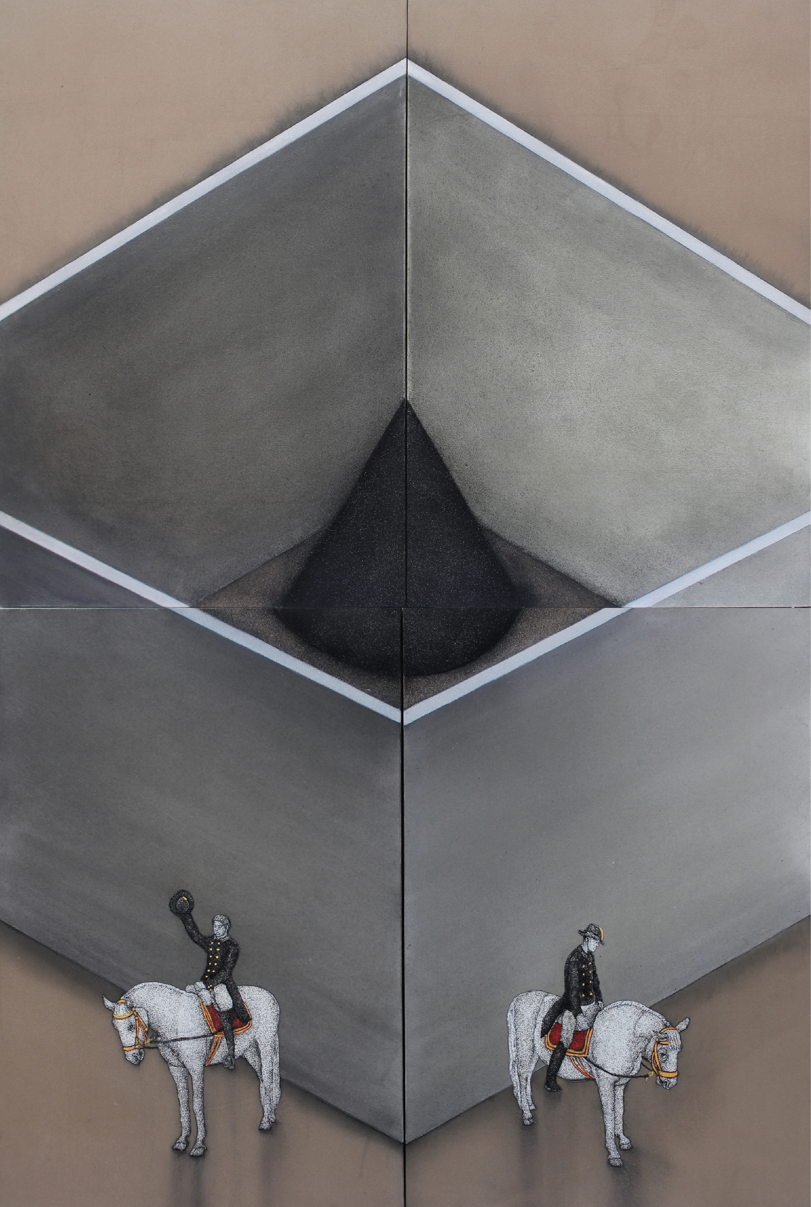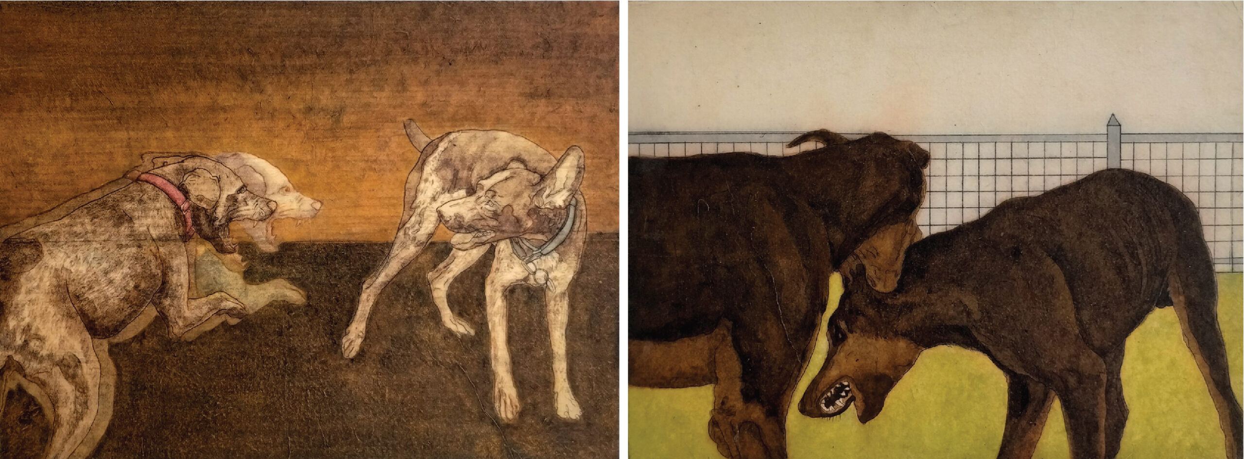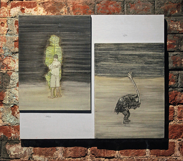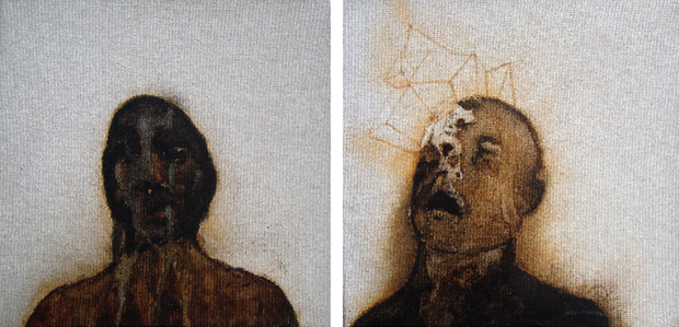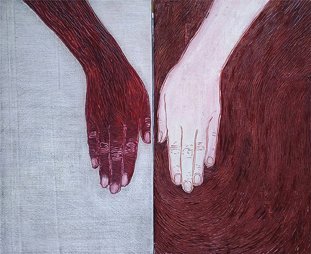 '“conflict” ink and acrylic on rice paper mounted on canvas 24” x 18” (each) 2022'