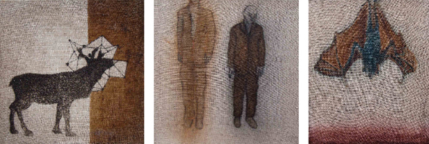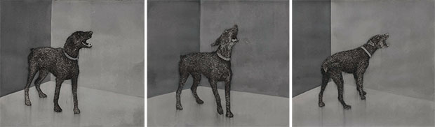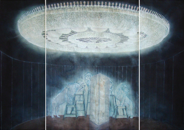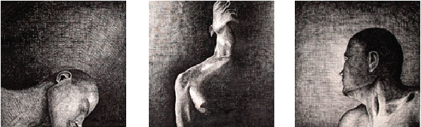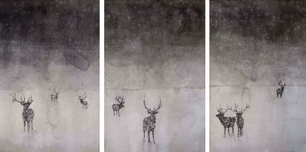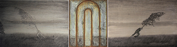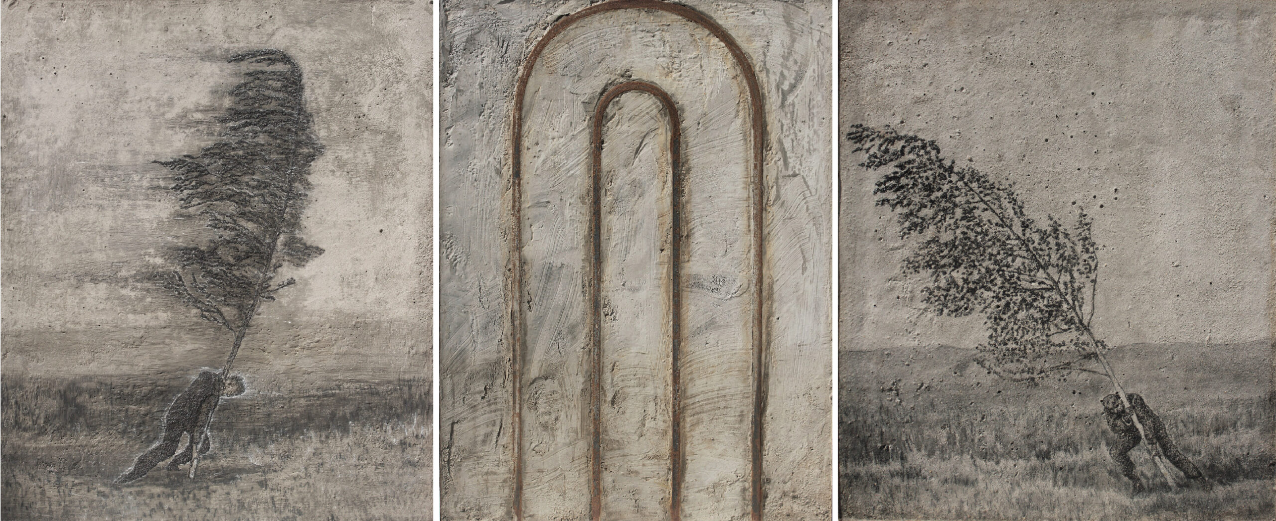 '“persistence of faith” concrete, iron, silicon carbide and ink 57” x 24” (triptych)'