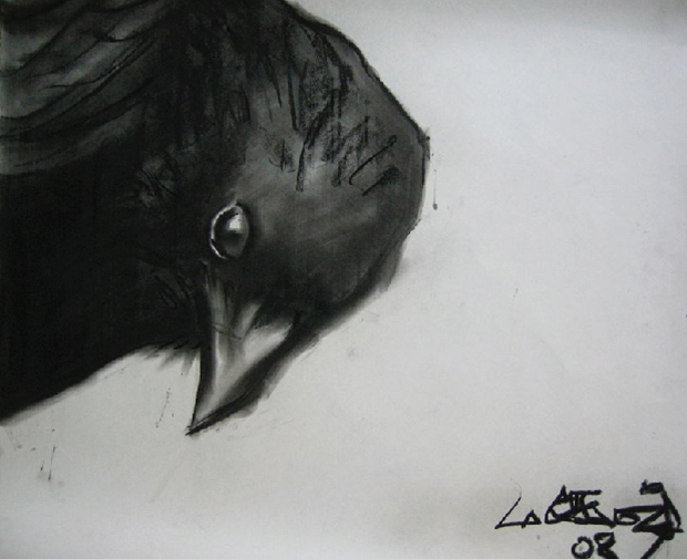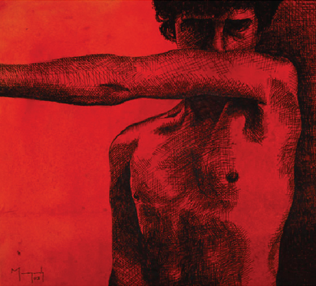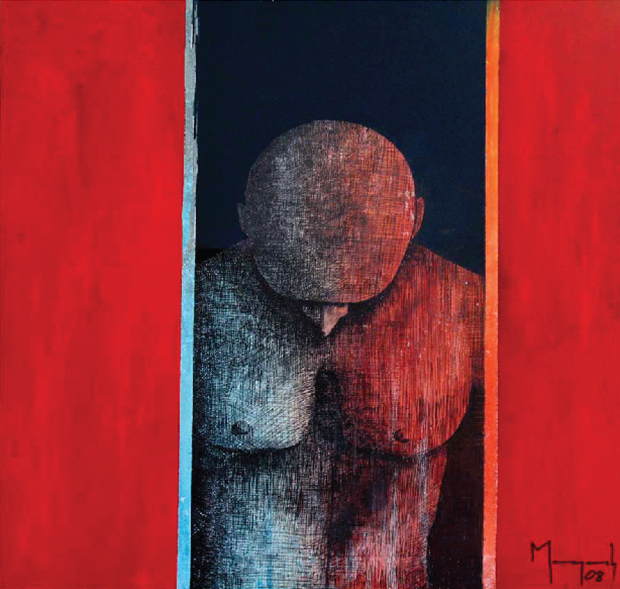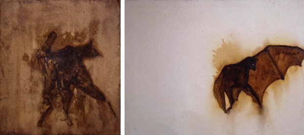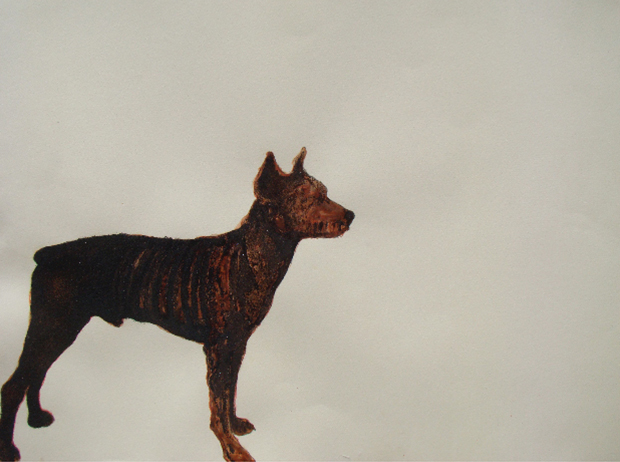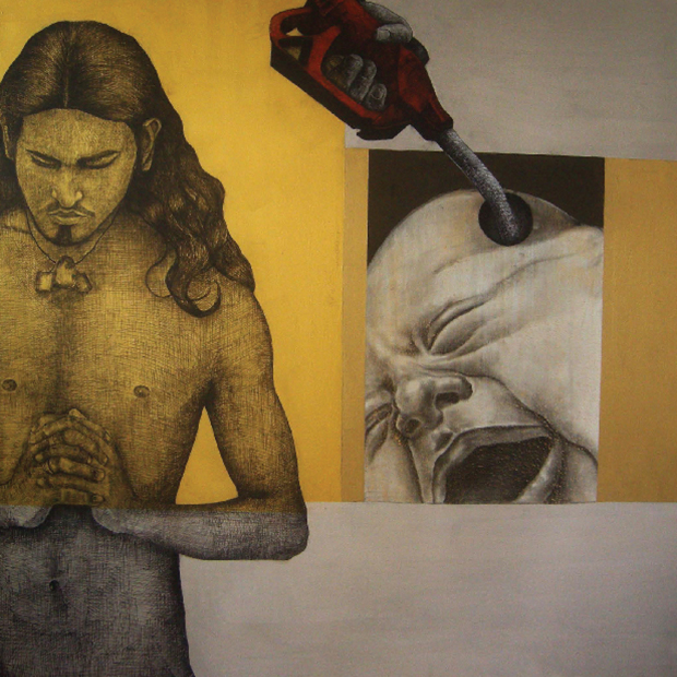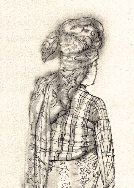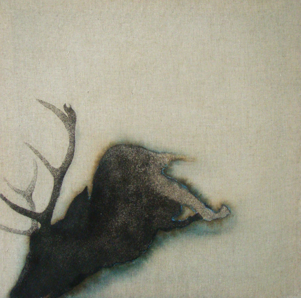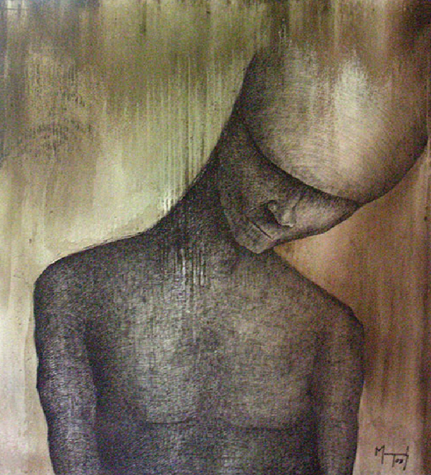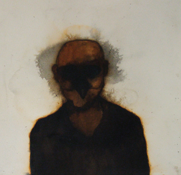 '“lucifer” mixed media on hemp paper mounted on canvas 36” x 24”'