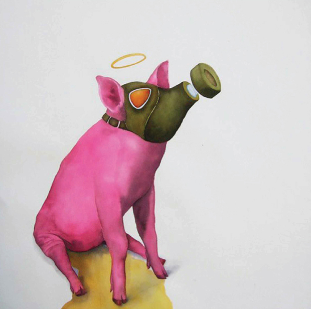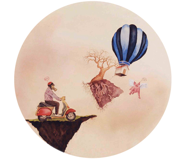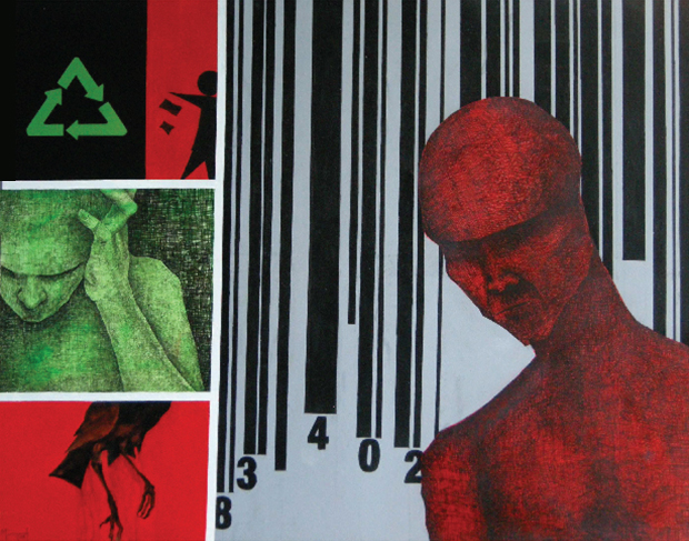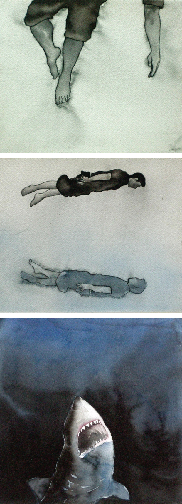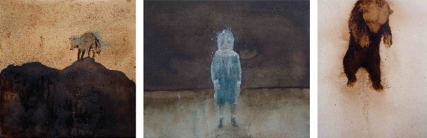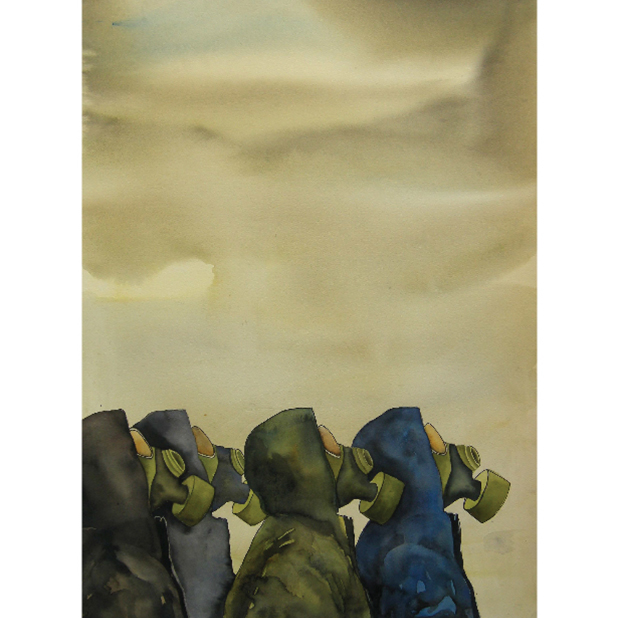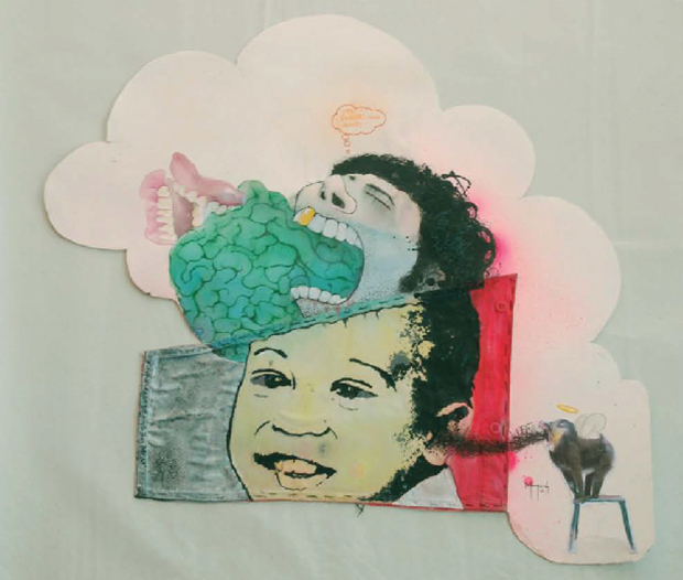 watercolour, acrylic lacquer, fabric, pen, paper,collage, enamel and gouache on paper