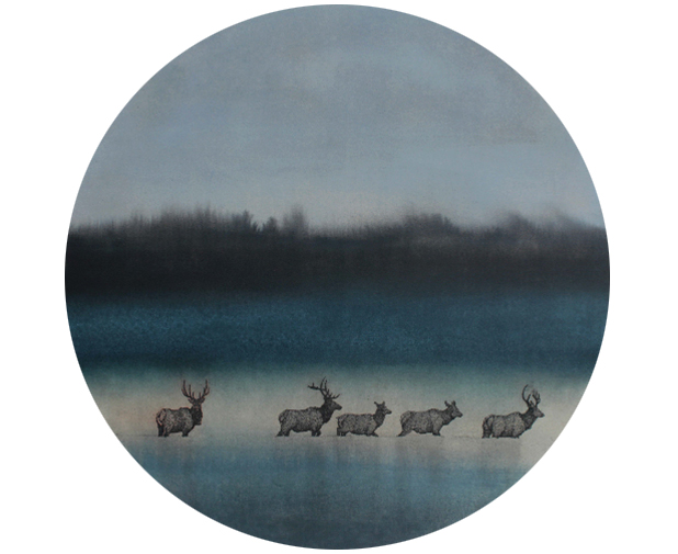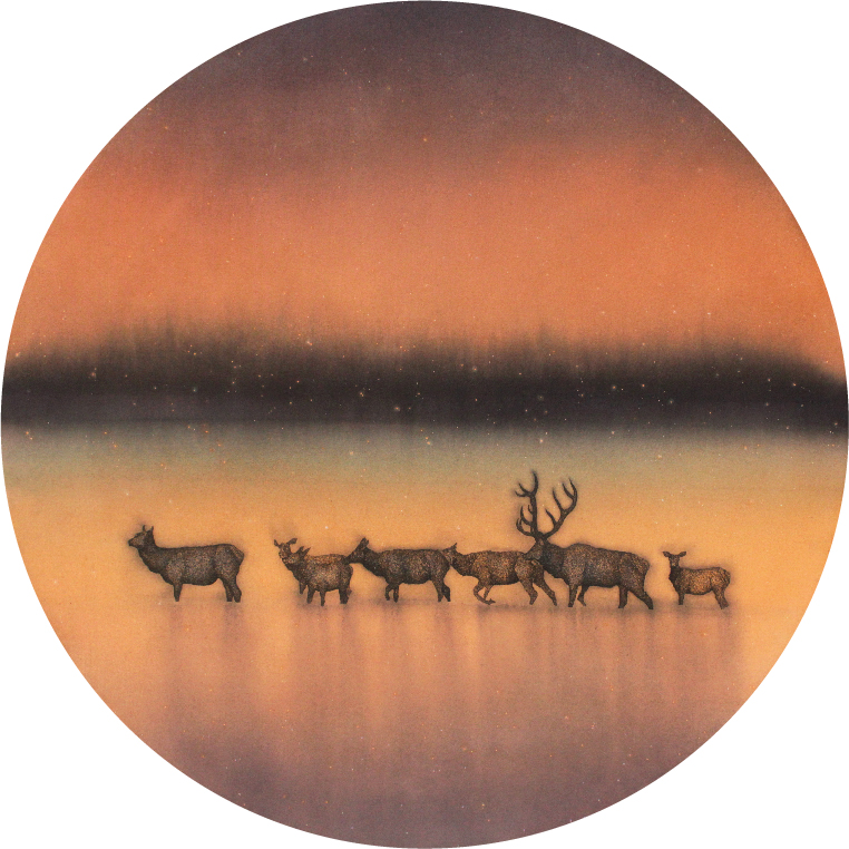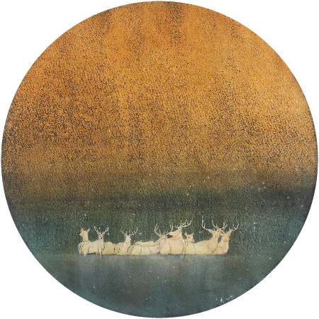 '“a placid dream” ink and acrylic on handmade cotton rag paper 24” (dia)'