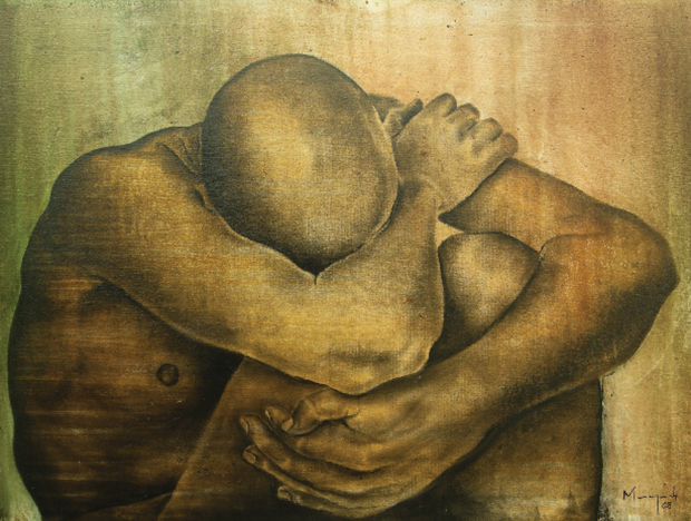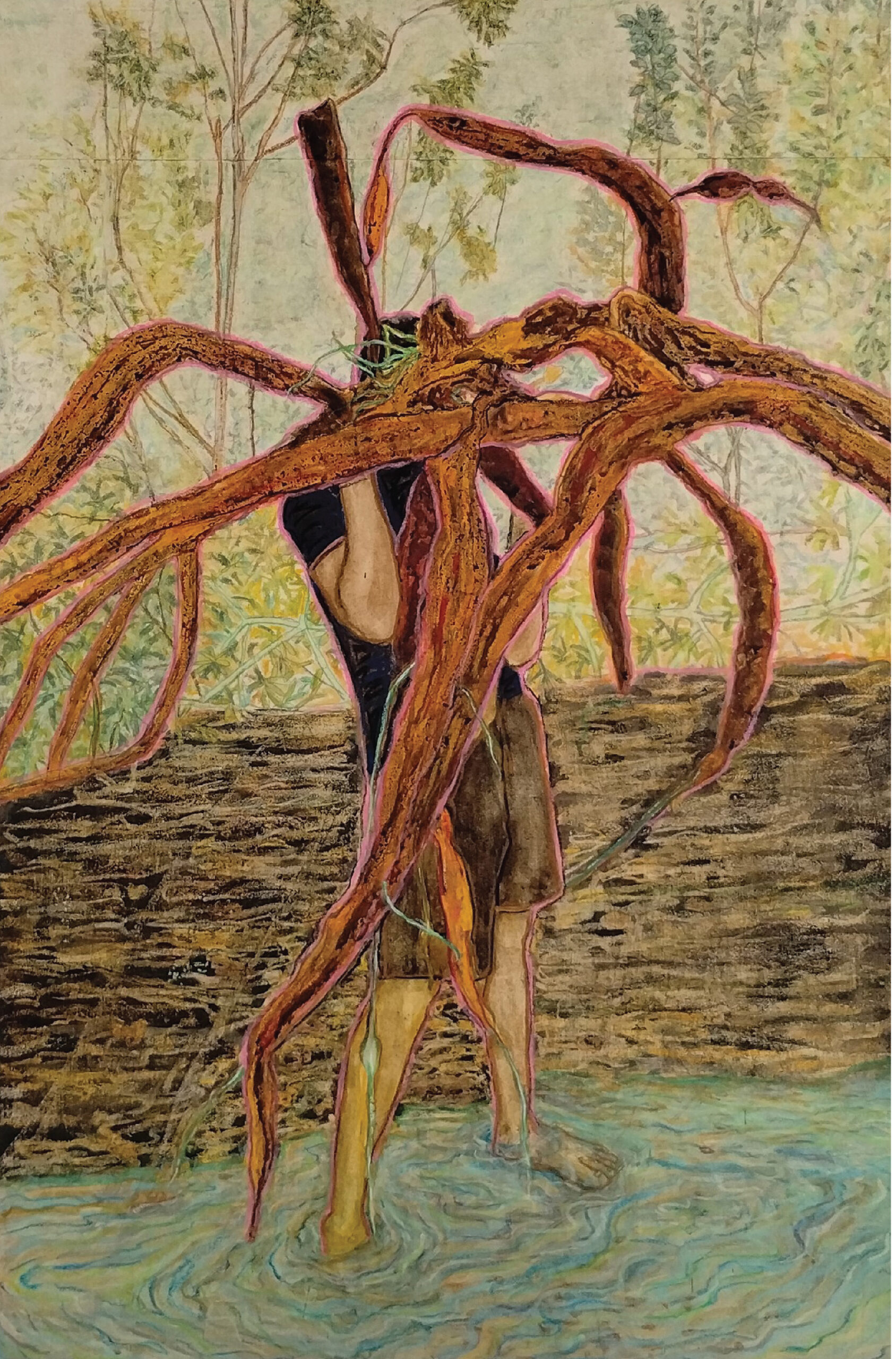 '“roots” mixed media on hemp paper mounted on canvas 36” x 24”'