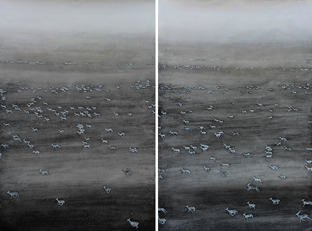 '“untitled” silicon carbide on toned paper 36” x 27” (diptych)'