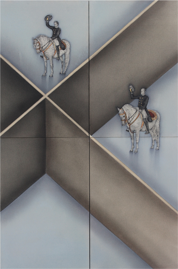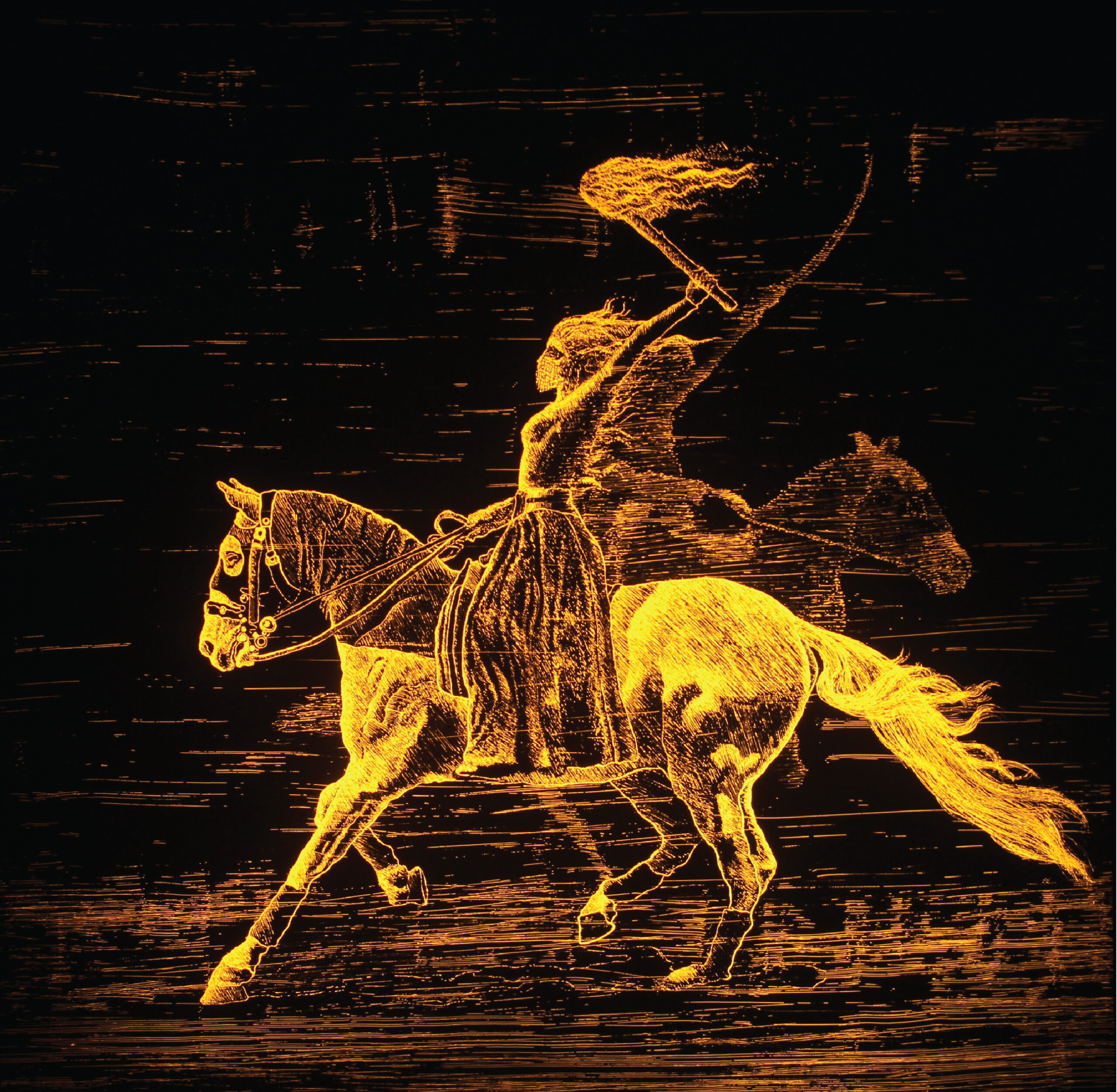 '“the triumph” acrylic and engraving on plexiglass mounted on wooden lightbox 36” x 24”'