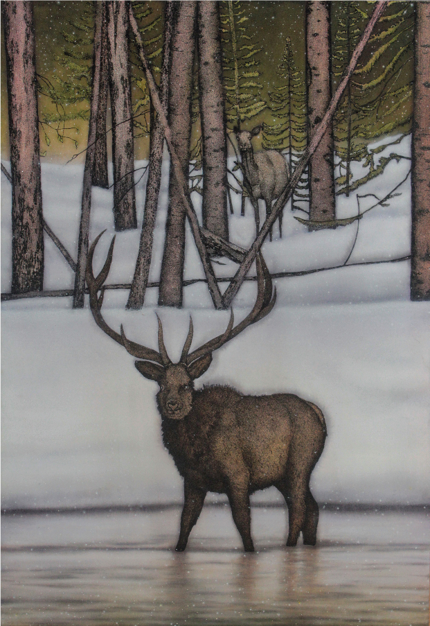'“the liminal divide” acrylic and engraving on plexiglass mounted on wooden lightbox 36” x 24”'