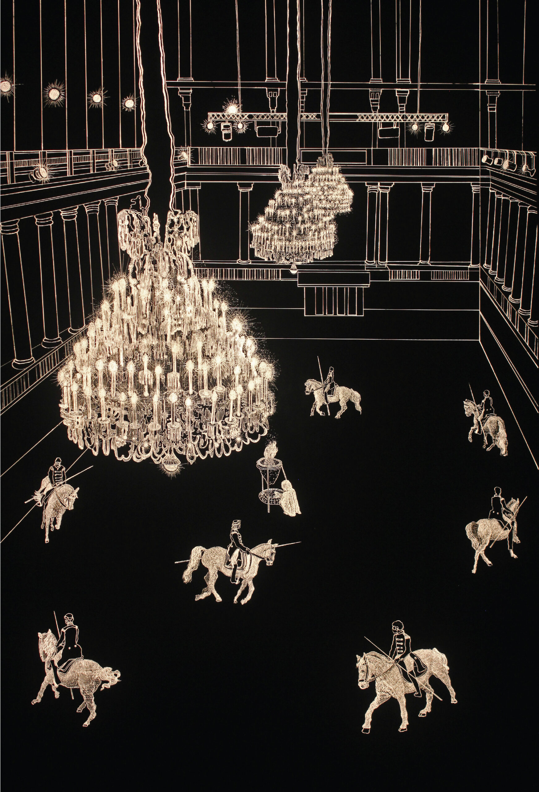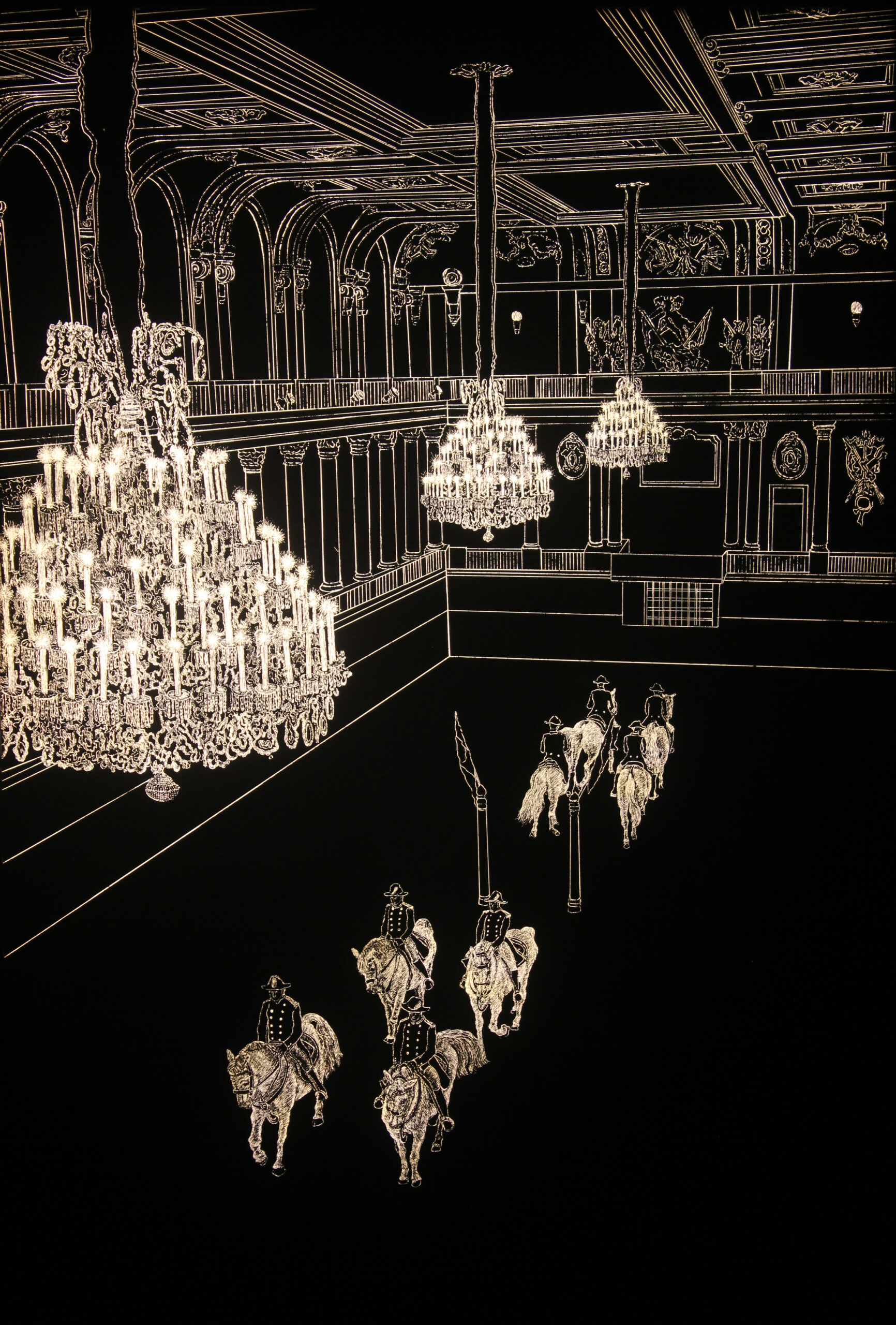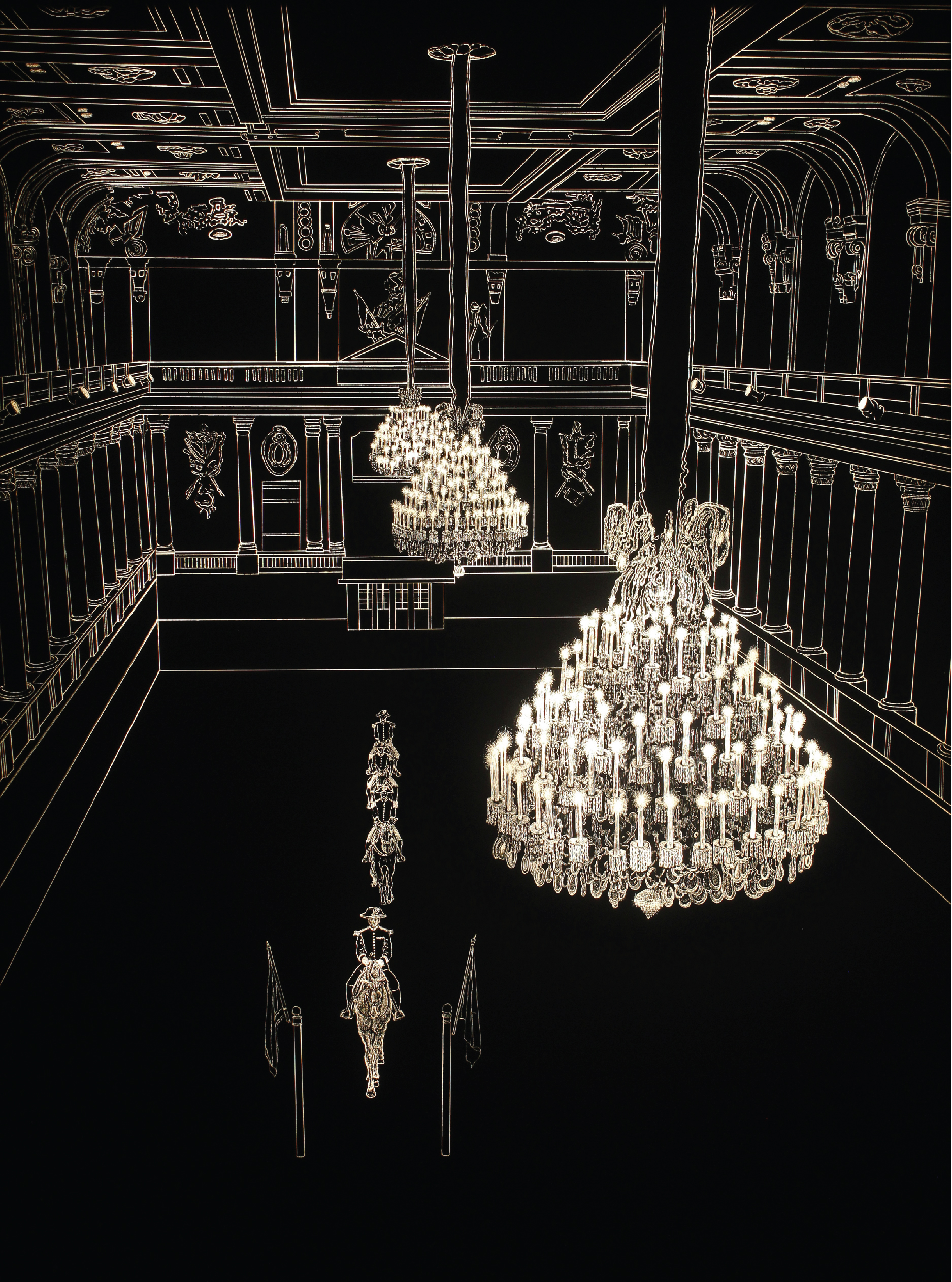 '“the triumph” acrylic and engraving on plexiglass mounted on wooden lightbox with led fixtures 48” x 36”'