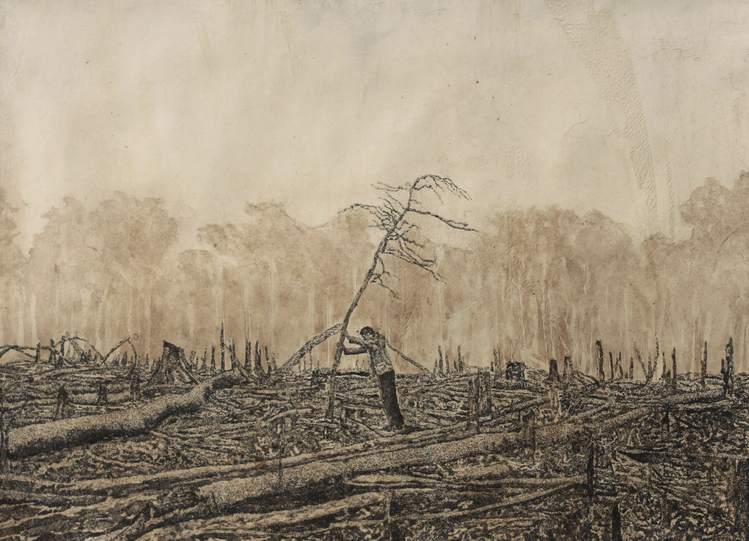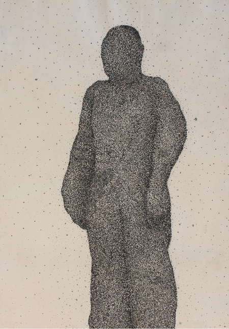 '“persistence of faith” ink and silicon carbide on handmade hemp paper 34” x 25”'